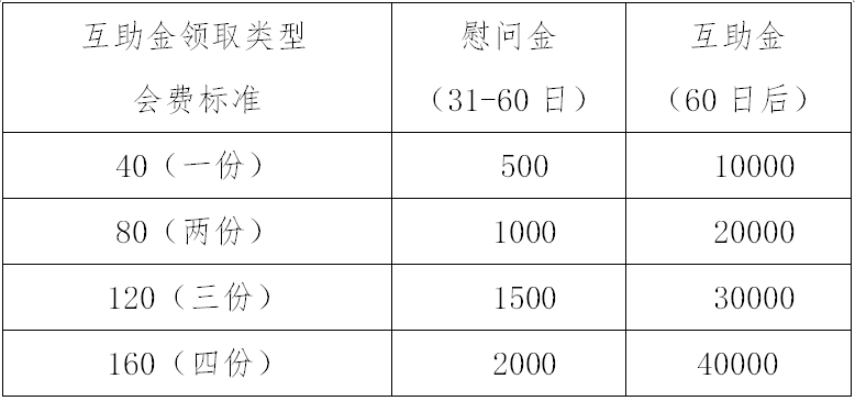 1.参加本活动会费标准为每人40元(每份),交纳会费后互助保障期在约定时间统一生效。互助保障期一经生效中途不得退出本活动。
